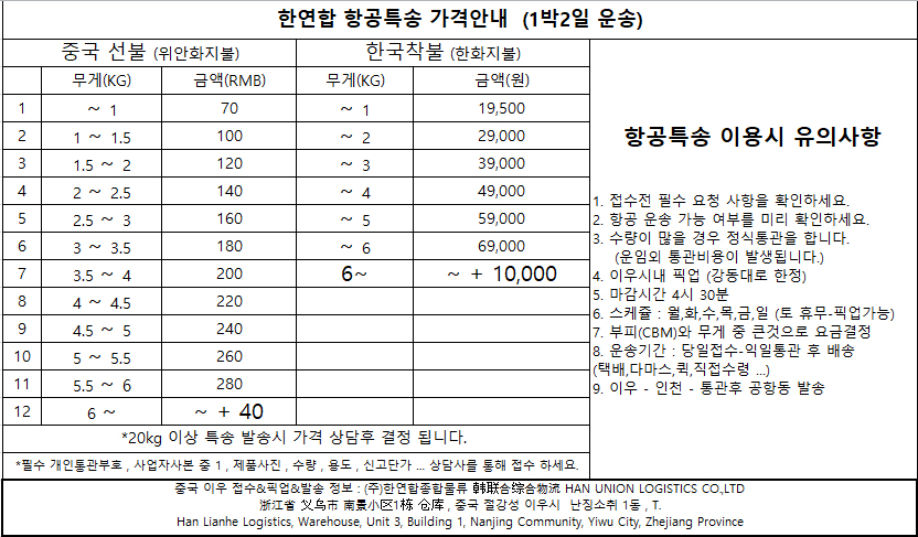 이우 , 위해 접수-한국 운송 (1박2일운송)
